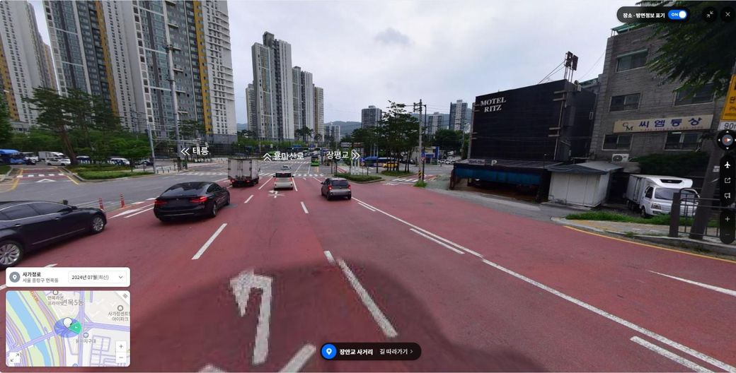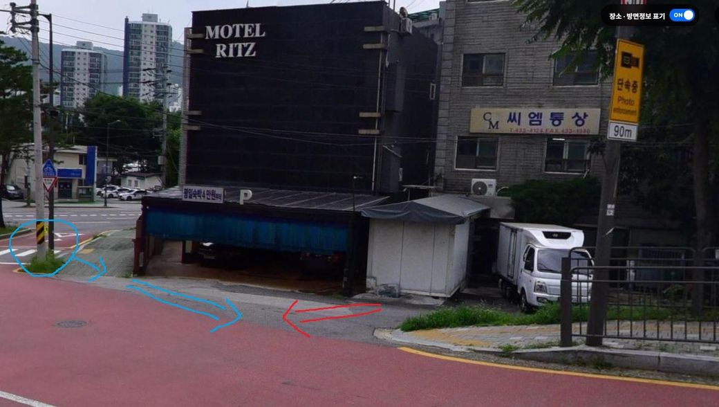 그래서 부족하나마 사진으로 첨부를 드립니다 첫번째 사진은 사고당시 위치이고 두번째 사진은 사고난 장소와 진행경로를