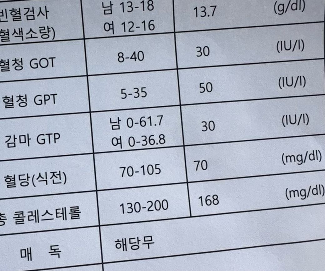 간 수치를 유발 할 수 있는 과도한 음주, 불필요한 건강기능식품의 과다 섭취, 한약, 민간 요법은 피하고 추후 추적 검사를 받아보기 바랍니다.