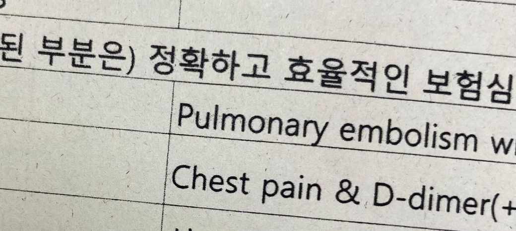 오래전부터 흉부통증과 피임약 장기 복용후 중단으로 8월 16일 피검사 -> D-dimer 양성 -> 정밀 피검사 혈전 양성 -> 9월 5일 CT 폐 조형술 이상 없음 -> 폐기능검사, 산소포화도검사 후 산소포화도 정상, 폐기능 안좋음 폐에는 혈전이 없고 천식만 심하다해서 그 이후로 병원에 안가긴 했어요.