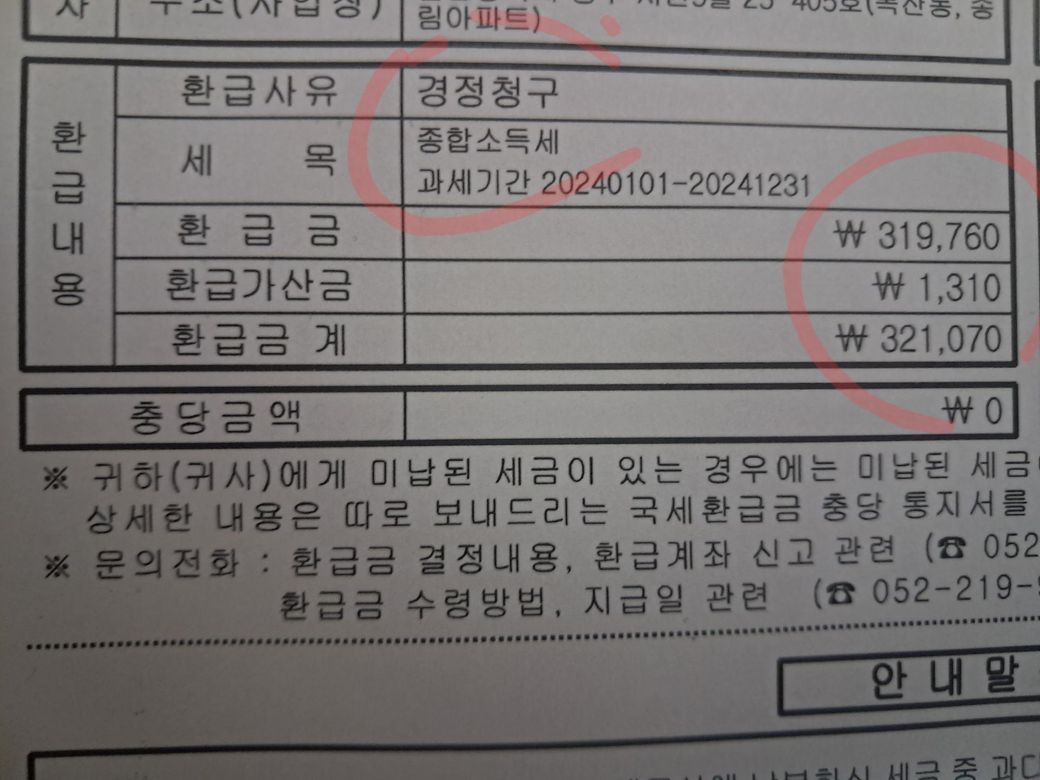 제가세무서와 중구청에서 경정정구해서