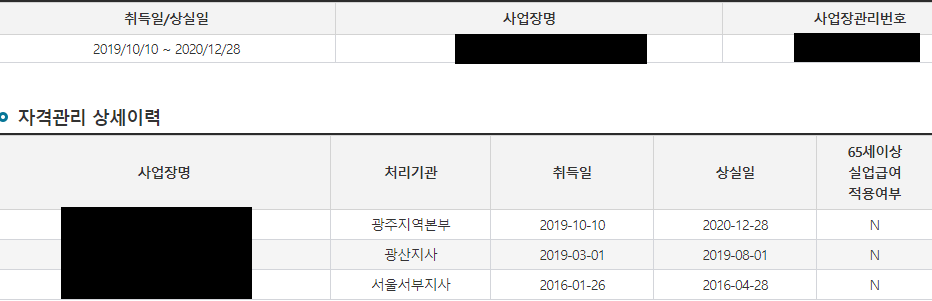 아래 그림은 상용(첫번째 ),일용(두번째) 고용보험 가입 기간 및 급여내용입니다.