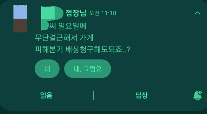 무단결근으로 입은 피해에 대한 손해배상은