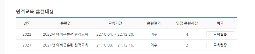 보통 2021 원격교육을 들었으면 2022 예비군에서 2시간 차감되어 조기퇴소되지 않나요?