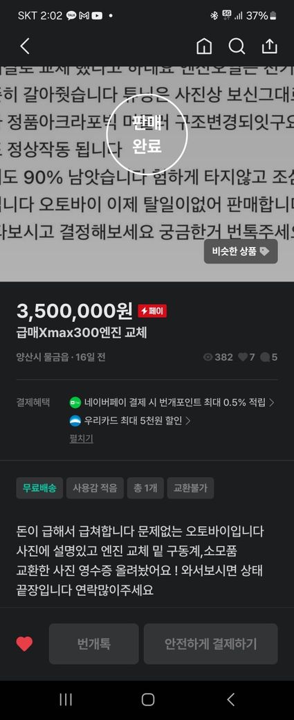 크랭크쪽 실리콘을 덕지덕지 발라져있는걸 보았습니다 센터측에서 일부러 임시조치하고 빨리판거같다고 판명하셨고