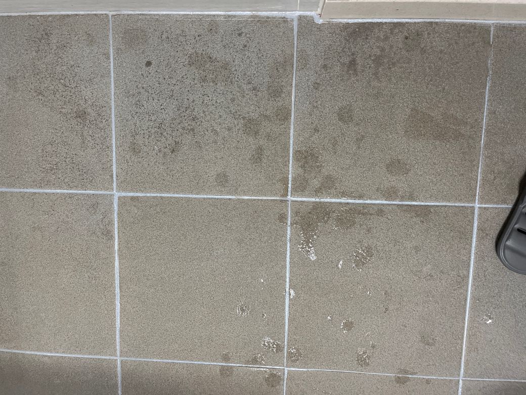 이거 타일 곰팡이인가요? 어떻게 없애요? 입주한지 일년 사개월 조금 넘은 신축 아파트입니다 화장실 청소도 자주하는데 저 타일 얼룩? 곰팡이? 는 락스로도 절대 안지워지네요 어떻게 해여 없앨수있나요? 혹시 신축하자인가요? 아래 바닥에서부터 올라오는걸까요?