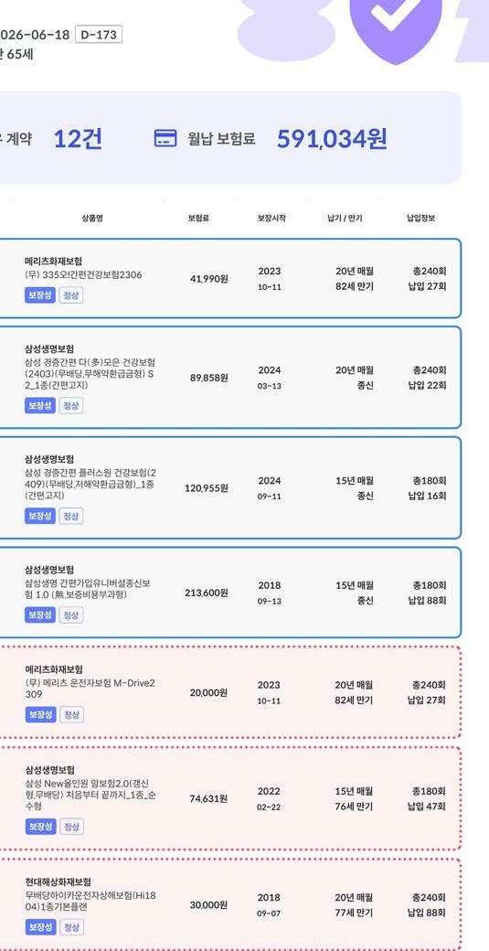 65세 남성 보험 확인 좀 부탁드리겠습니다
