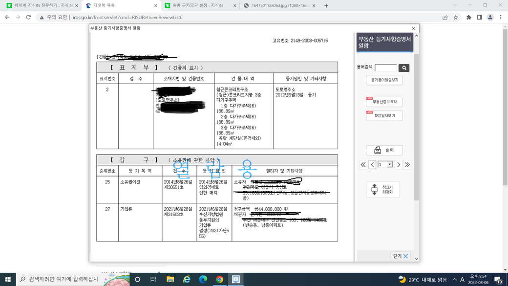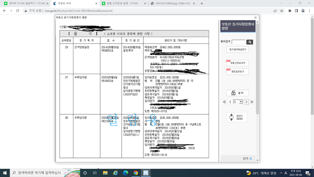 현재 원룸 건물에 2명이 2020년에 근저당권 설정했는데 아직도 반환이 안됬는지 근저당권 설정한것이 안없어지네요