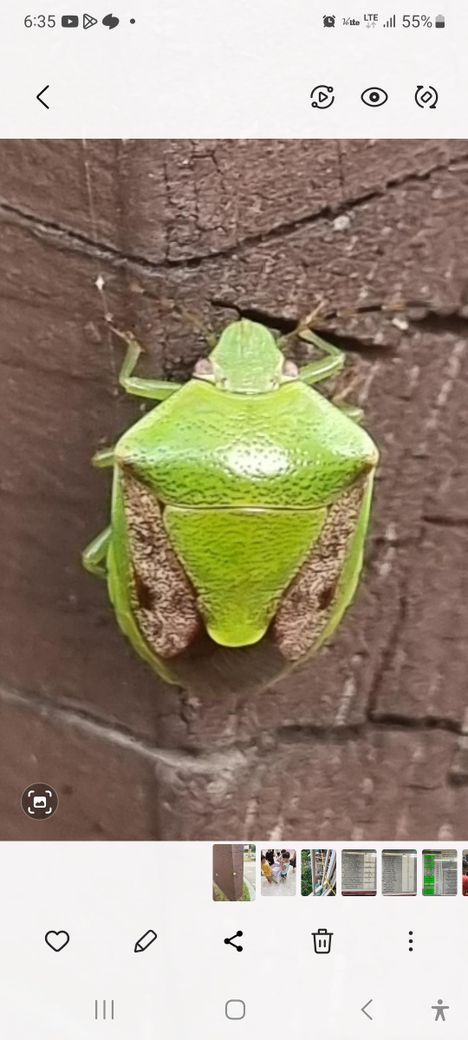위 곤충의 이름은 푸른노른재 입니다 초록색 노린재는 식물과 잎과 어울어지는 초록색을 띄며 이것은 자신을 보호하는 보호색입니다.