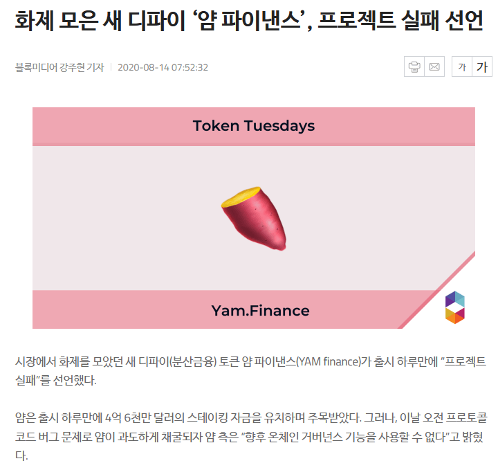 3. 디파이 얍 프로젝트 실패 https://decenter.kr/NewsView/1Z6KQFB9WM