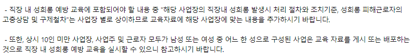 5인미만으로 노동부 사이트에 있는 교육자로 베포하려고 했는데 처음 두 줄이 무슨 말인지모르겠어서요. 교육자료에 저런 내용이 없으니 추가하라는 건지 아니면 교육자료에는 있지만 사업장에 맞춰 뭔가를 작성해서 그것도 교육자료에 포함하여 베포해야한다는 건지요?