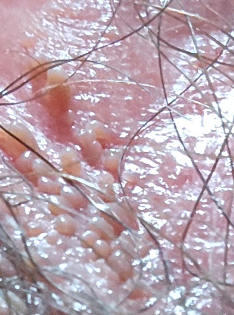 갑자기 생식기가 간지럽더니 저런 모양의 좁쌀 같은 것들이 많이 나 있습니다. 예전에 지금 남자친구를 사귀고 있을 때 hpv 검사를 받았었고 그때는 아무런 바이러스가 발견되지 않았습니다. 그래도 곤지름일 수 있을까요? ㅠㅠ