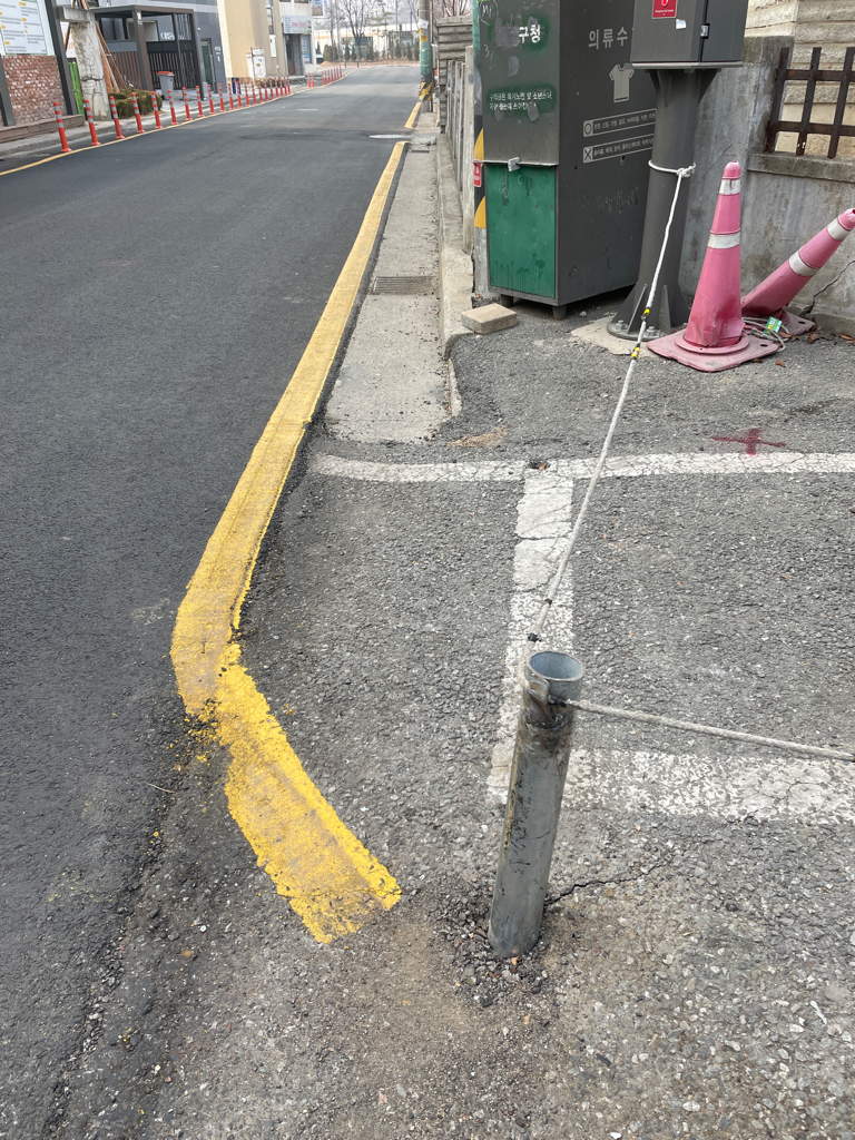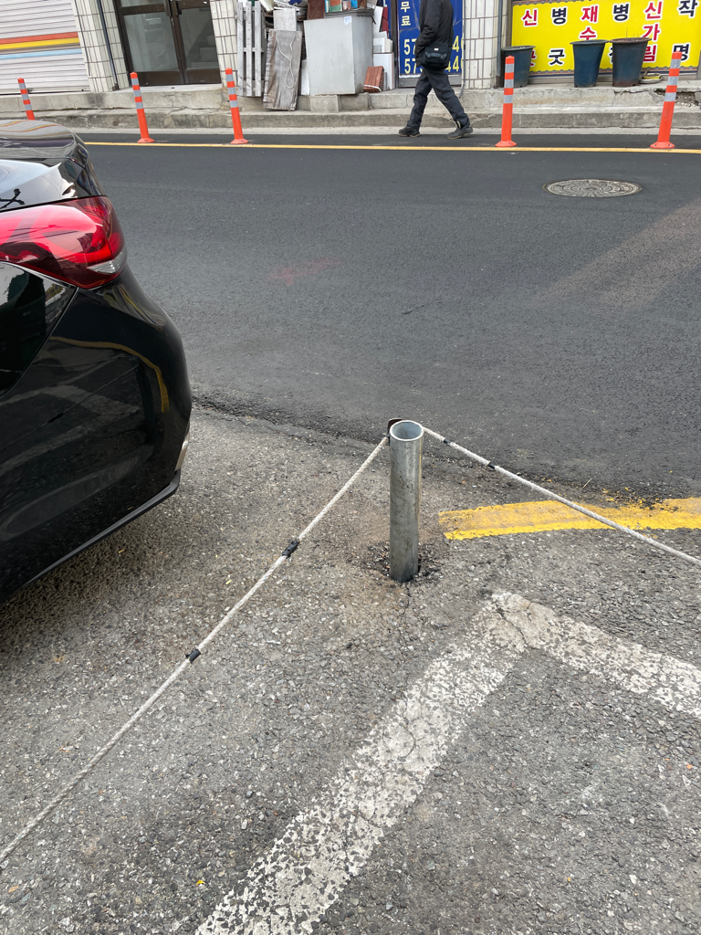 빌라 앞에 외부차량 주차 못하게 하기 위해 박아둔 말뚝입니다.