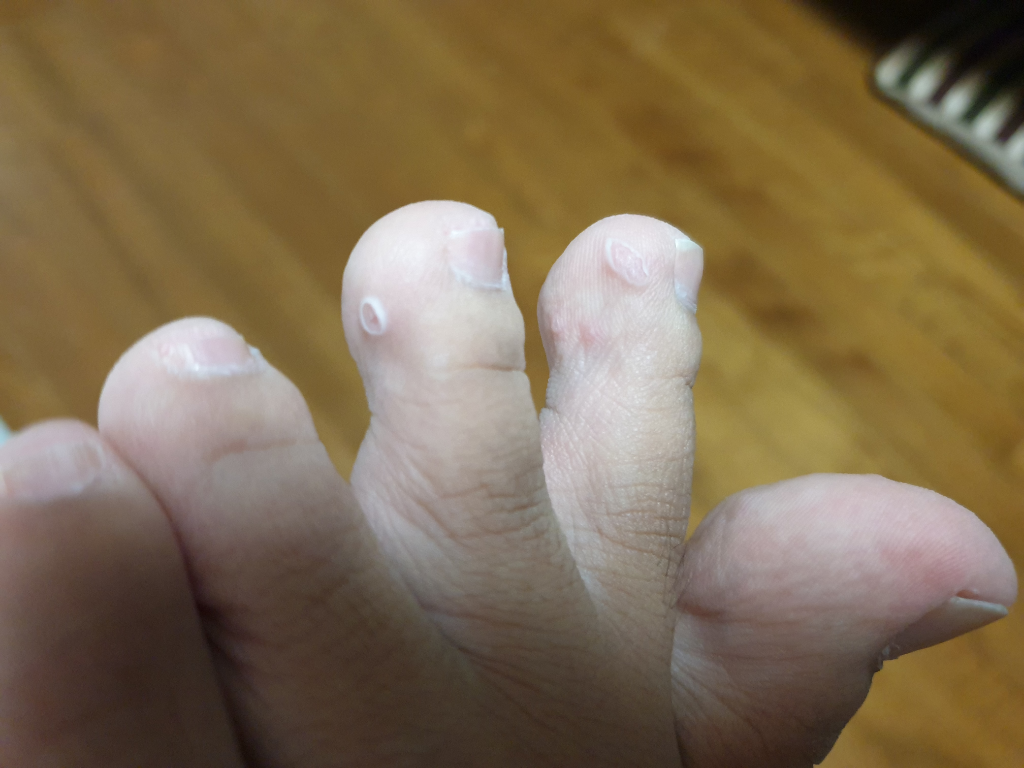 발바닥에 사마귀가 6개정도 작게생겨서 냉동치료중인데 지금보니 발가락 두개 사이에 꼭 물집이 생겼다 터진것같이 저렇게 되어있네요. 사마귀가 번진건가요? 아니면 별개로 무좀이 생긴걸까요?