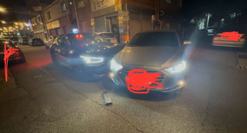 하며 위 사진과 같이 조수석 옆을 박은 경우 보험사는 동시 진입으로 처리할 확률이 큽니다.
