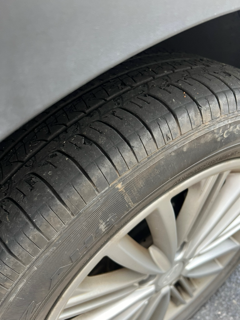 트레이드가 다 안되도 타이어에 균열이 생기면 교체를 추천드립니다. 완전 경화가 되서 플라스틱 바퀴를 끼고 운전하는것과 비슷한