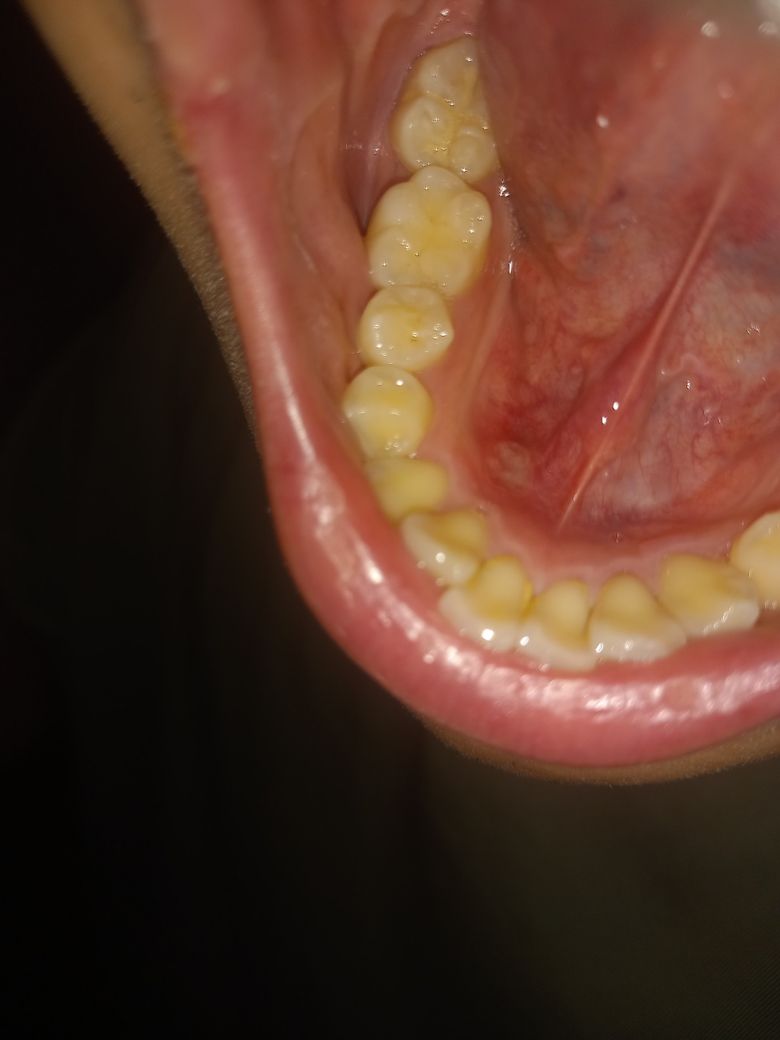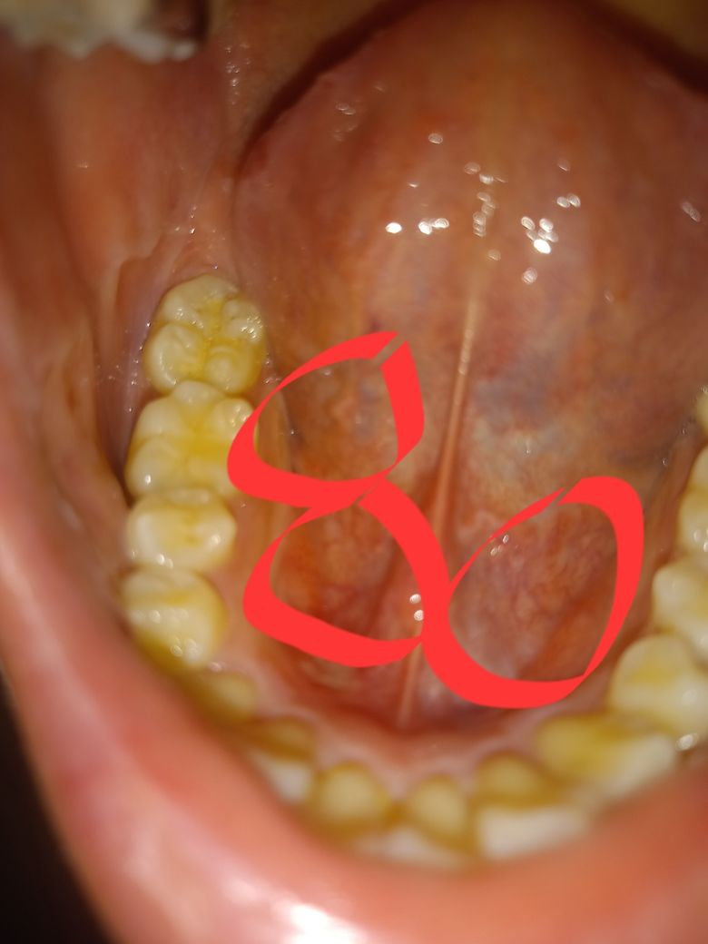 사진을 통해 구강의 상태를 확인한 결과, 구내염과 유사한 궤양이 보이긴 하지만, 구강 매독의 가능성이 높아 보이지는 않습니다. 구강 매독은 초기 단계에서 무통성 궤양(경성 하감)이 나타나는 것이 특징이며, 시간이 지나면서 발진이나 다른 심각한 증상이 나타날 수 있습니다.