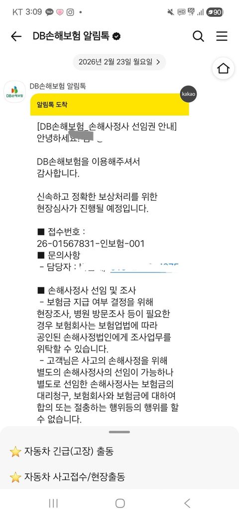 위 내용으로 보아 손사 담당자가 조사 진행하겠다는 내용 같은대 조사는 왔다 갔는지요?