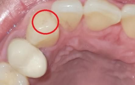 왼쪽에 있는 치아는 신경 치료하고 때운곳이고