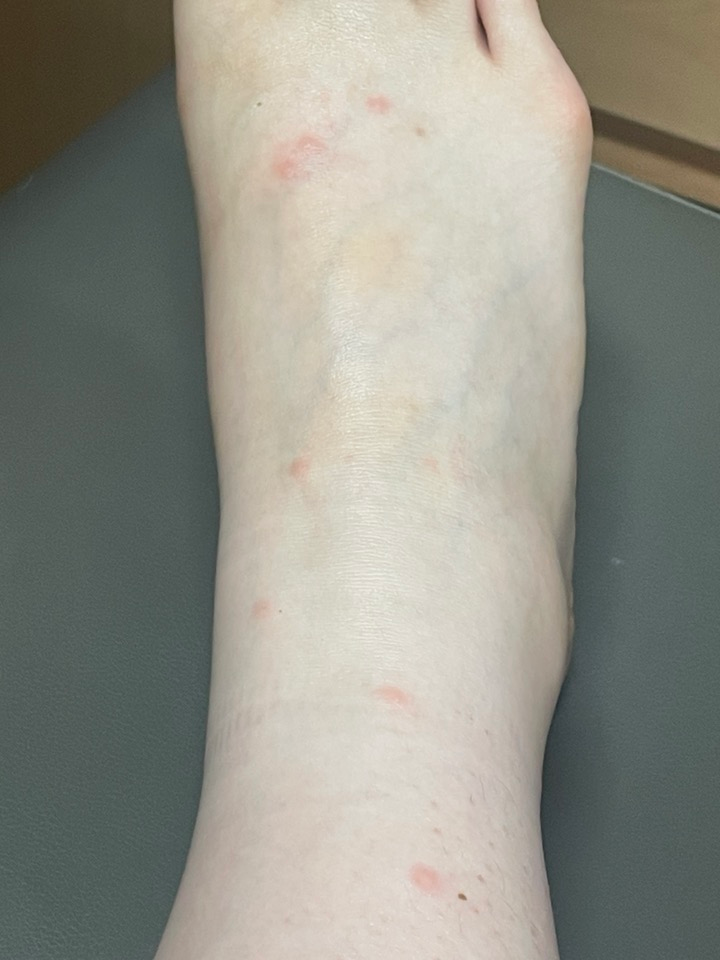 사진의 소견만 보고 구체적이고 정확하게 무엇에 물린 자국인지 파악 및 판단이 가능하지는 않습니다만, 알러지 보다는 물림에 의한 소견으로 보이긴 합니다.
