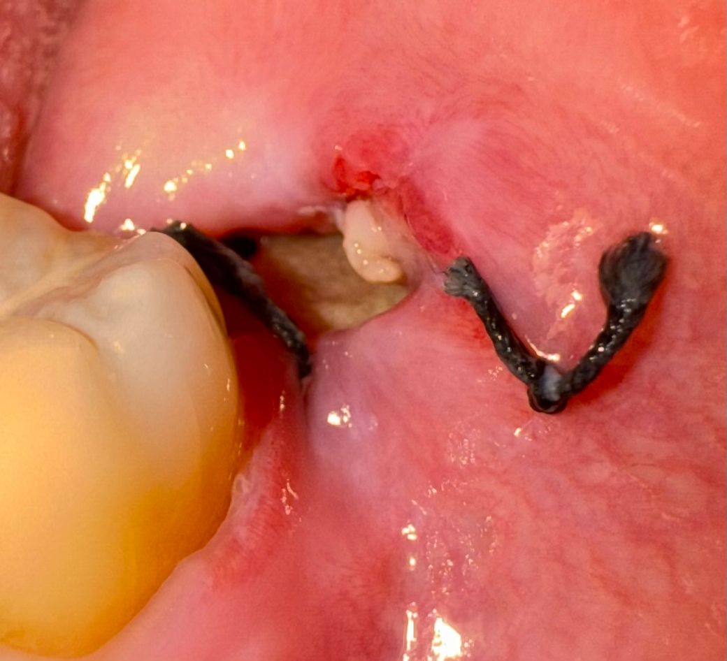 위에는 잘 아물고 있는 것 같은데 밑에는 실밥도 끊어졌고 하얀색이 있어서 이수시개로 살살 빼보려고 했는데 안 빠지는데 이거 뭐예요..?.. 혹시 이거 구강 세척기로 하면 빠지는건가요? 통증이 조금 있고(참을만함) 진통제랑 항생제 복용하면서 핵사매딘으로 양치 할때마다 행궈주고 있어요. 드라이소켓인가요?