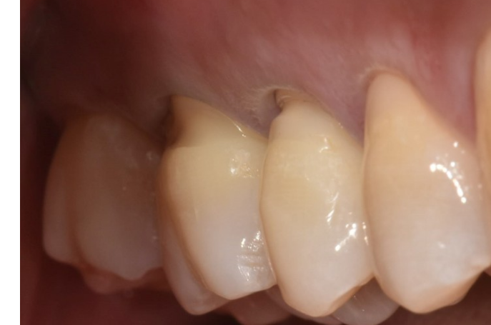 치아와 잇몸 사이 경계부분이 마모되는 치경부 마모증은..강한 힘으로 좌우로 닦는 잘못된 칫솔질의 원인이 많으며..칫솔질을 상하로 부드럽게 닦아줘야 합니다..레진 수복을 통해 개선될수 있습니다.