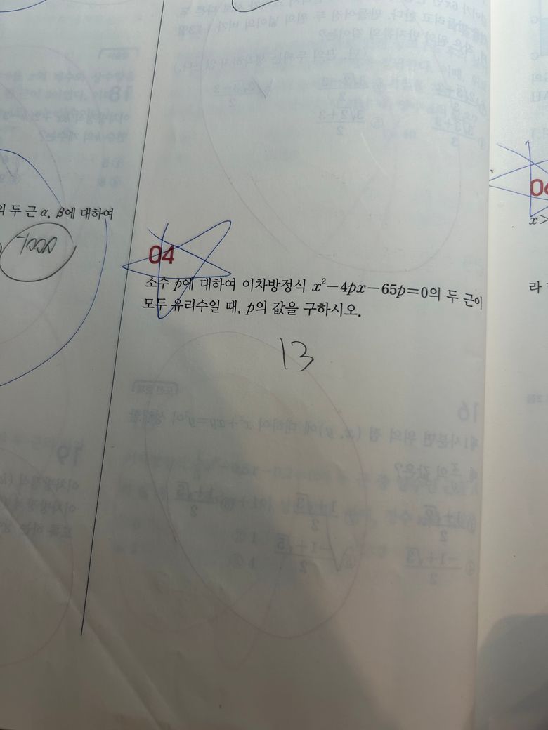 그런데, 근이 유리수가 되려면 판별식뿐만 아니라, **상수항**이 중요합니다. 이 방정식에서 상수항은 \( -65p \)입니다. 상수항은 근들이 만들어질 때 중요한 역할을 하기 때문에, 근이 유리수가 되려면 이 상수항이 쉽게 나누어떨어져야 합니다.