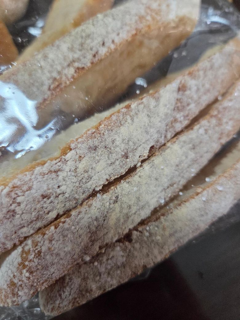 어제 빵가게 가서 바께트? 같은 빵을 구입했는데요. 빵 표면에 하얀색 가루? 같은 것이 묻어 있는데 이 가루는 무엇인지 궁금합니다 .