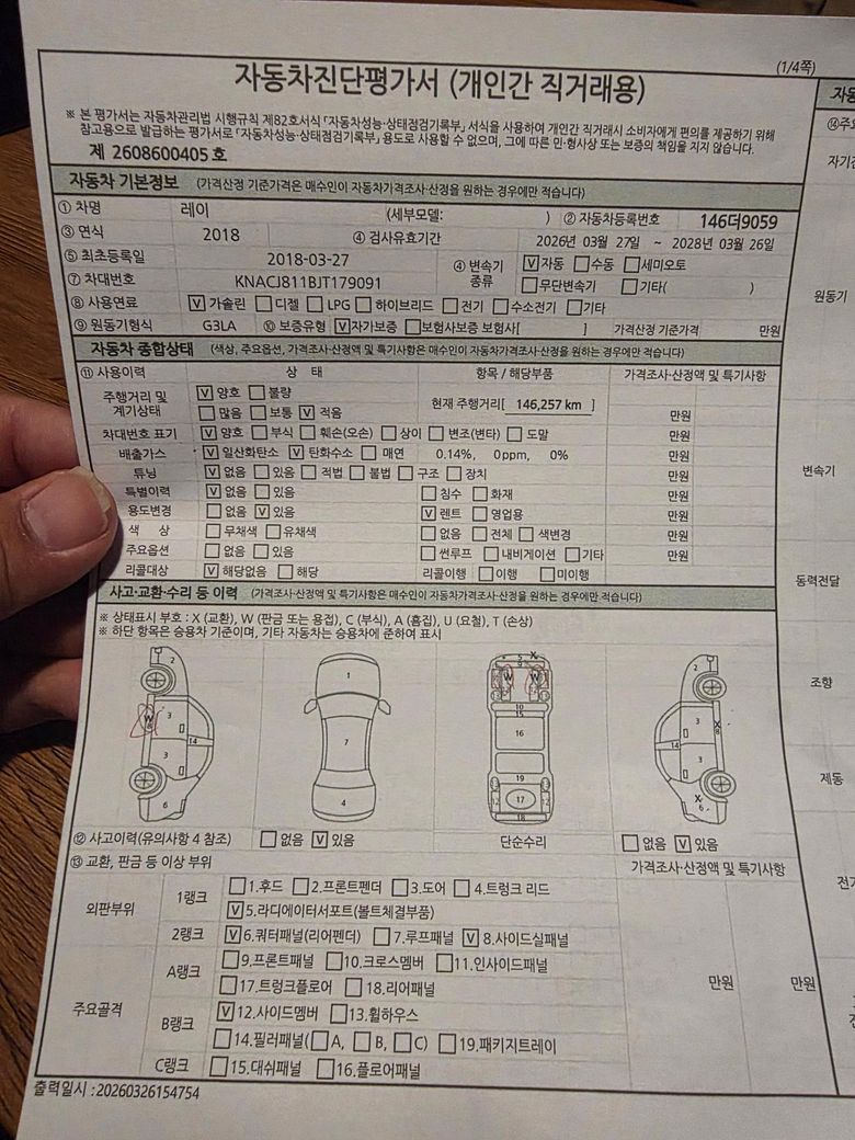 주요 골격 판금.용접이 있어 환불 요청했으나 거부하고 있는 상황입니다