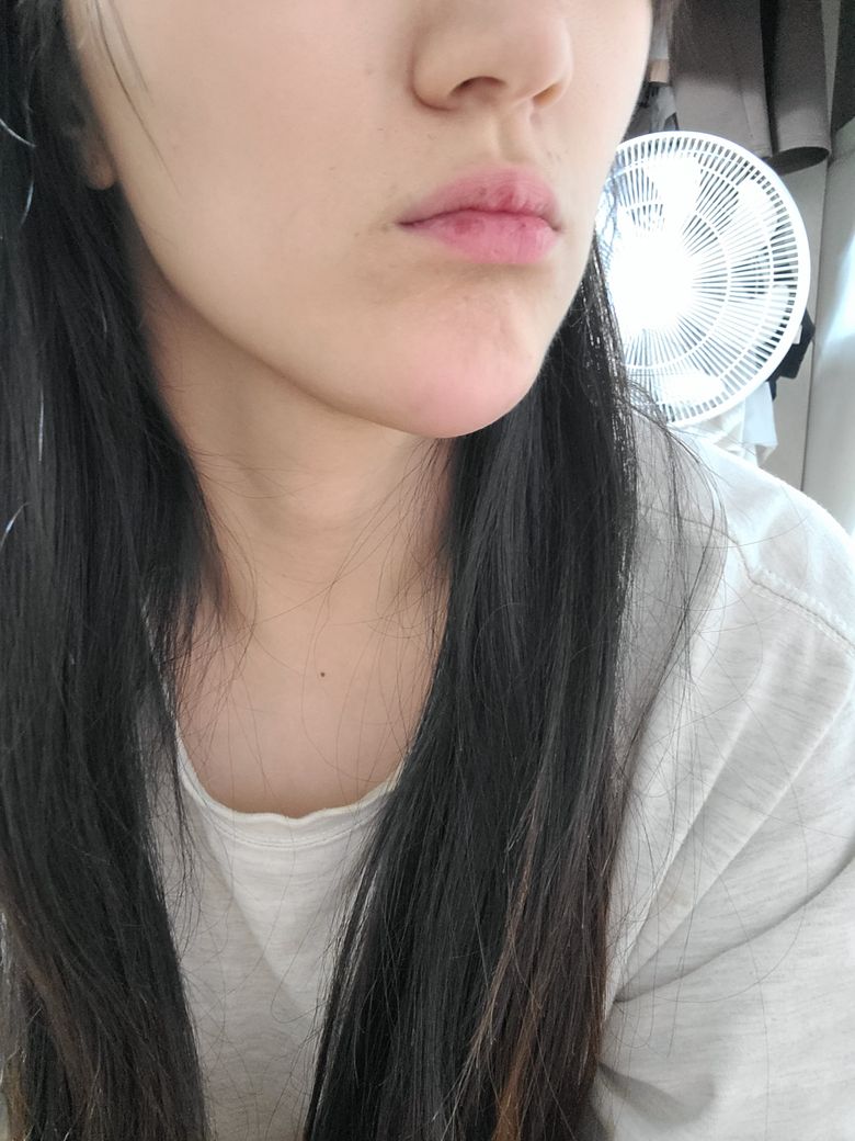 자꾸만 턱끝이 부어오르고 아프진 않지만 느낌이 불편합니다