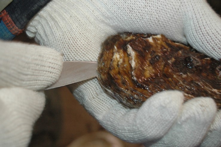 약간 열렷다 싶으면 관자를 완전히 절단해 줍니다
