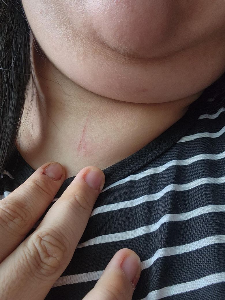 어느새 보니 목 가운데 쪽에 이런 게 생겼어요