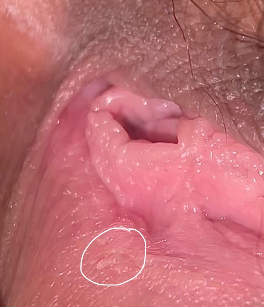 올린 사진의 형태만 보면 전형적인 곤지름 형태와는 다소 거리가 있고, 단일 돌기이며 색과 표면이 점막과 유사해 질전정유두종 또는 단순 점막 유두 형태 가능성이 더 먼저 고려됩니다. 다만 사진만으로 HPV 병변을 완전히 배제할 수는 없습니다.