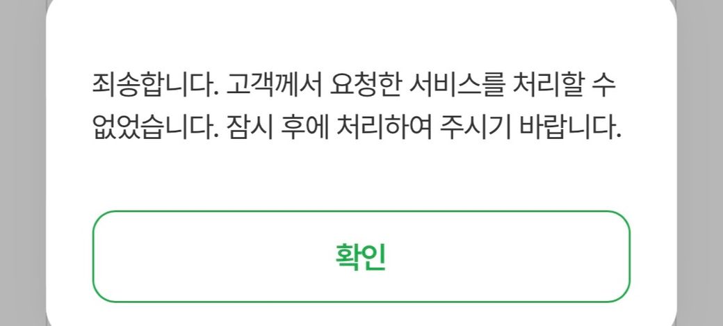 정확하게 어떤 화면에서의 오류인지는 확인이 불가하지만, 오류 내용으로 보아 시스템 에러이거나 앱 문제인 것 같습니다.