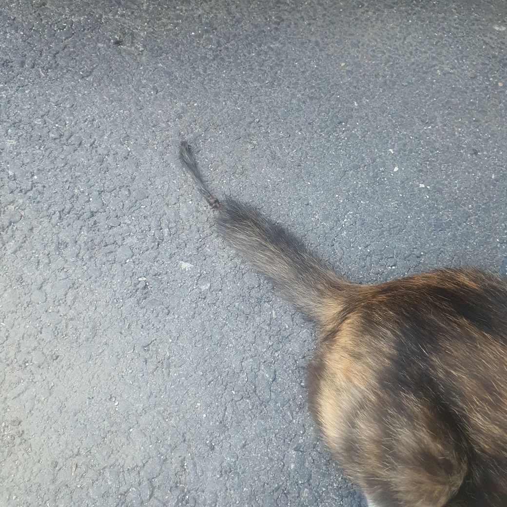 원래는(약 한달 전) 길고 멋진 꼬리를 갖고있었는데 어느날보니(약 2주 전) 꼬리 저부분 털이 너무 죽어있어서 뭔가했거든요.(그때는 피도 안보였고 저것보단 통통한 느낌이었어요) 5일만에 만났는데 피가 비치고 꼬리가 떨어지려고 해요
