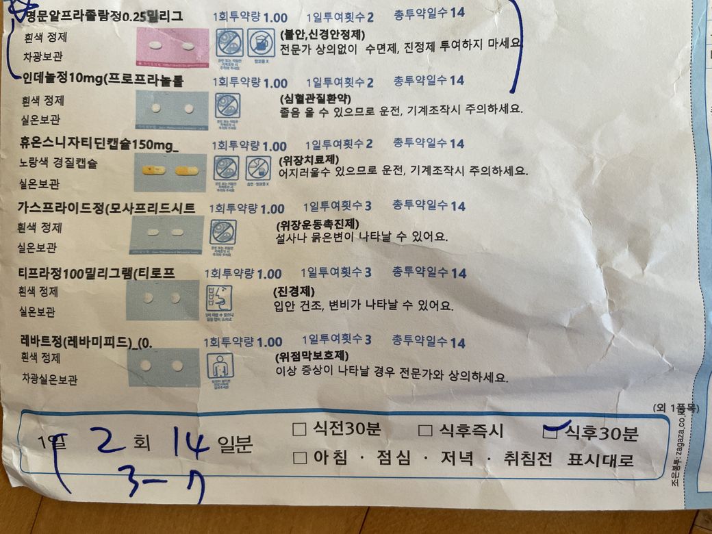 제가 위염약과 신경안정제 처방받아 먹는 게 있습니다.
