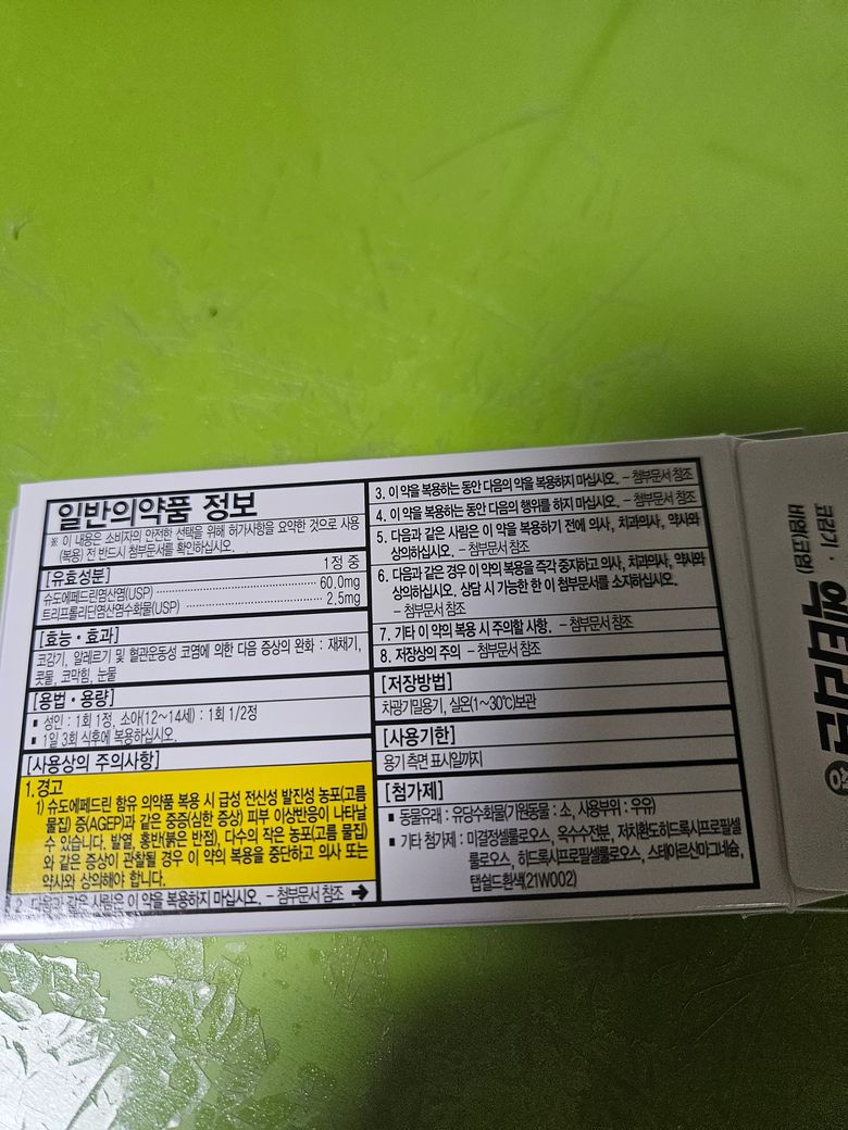 현재 복용하시는 약물에 함유되어있는 약은 항히스타민제인 트리프롤리딘 성분을 가지고 있습니다. 술을 같이 복용하시면 졸림,어지러움,구토 부작용이 나타날 수 있으므로 최소한 반나절 가능하다면 하루정도 간격을 두시는걸 권해드립니다.