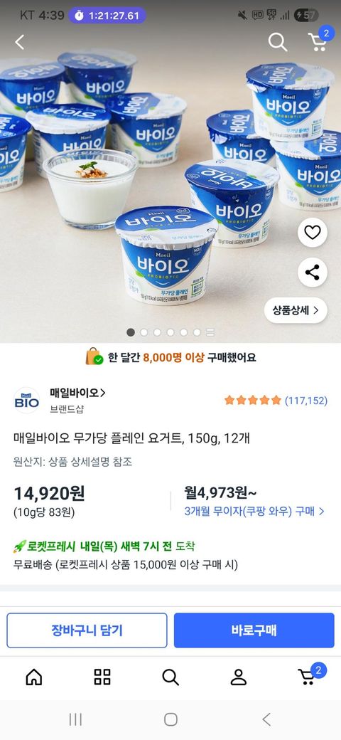 매일바이오 무가당 플레인 요거트, 150g, 구운계란대신 먹어도되나요 ?고지혈증약먹어서 걱정되서 구운계란대신 쿠팡에서파는 이거 1개씩매일먹으려하는데 당뇨나이런거걸릴까요 사진첨부합니다