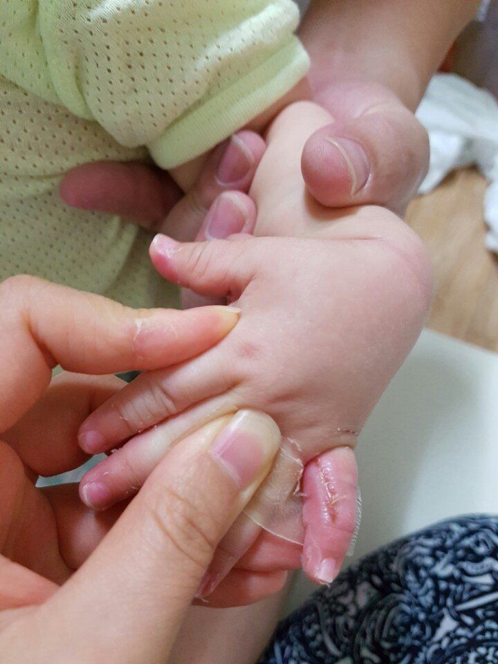 처음에는 의사가 대수롭지 않게 완치된다고 말해 화상치료를 하고 새끼손가락에는 연고만 바르는 정도로 했으나