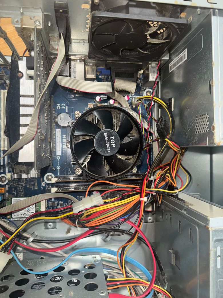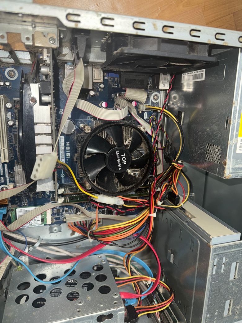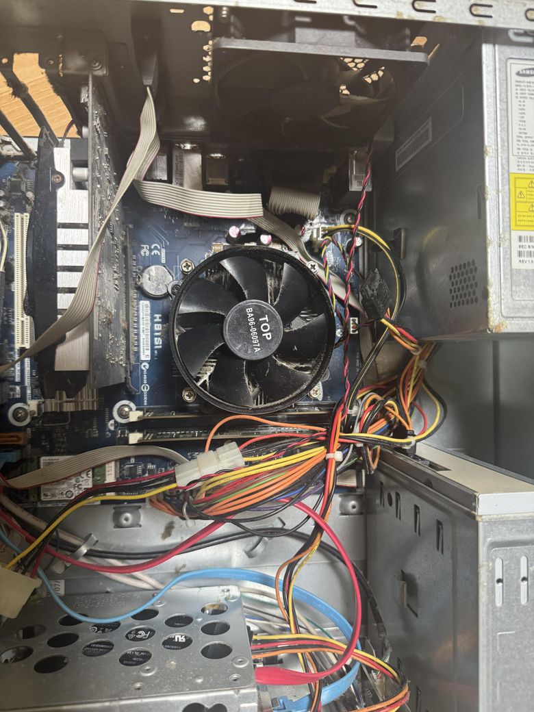 그래서 컴퓨터를 열어봤는데 현재 컴퓨터에 외부파워 6pin 케이블이 안보이는것 같아요.