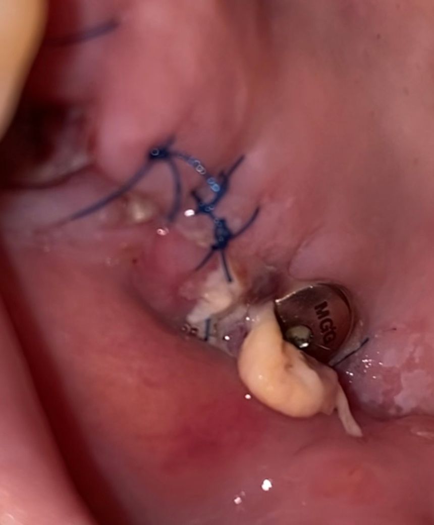 어머니께서 임플란트 이식 전에 상악동 거상술 받으시고 잇몸에 뭔가가 생겼는데 이것의 정체가 뭔가요?