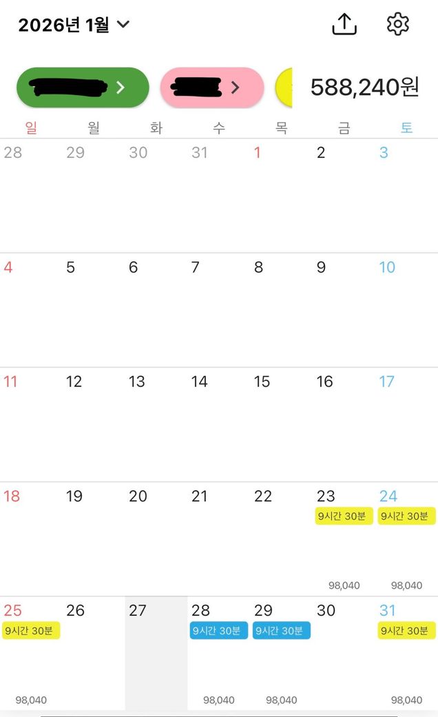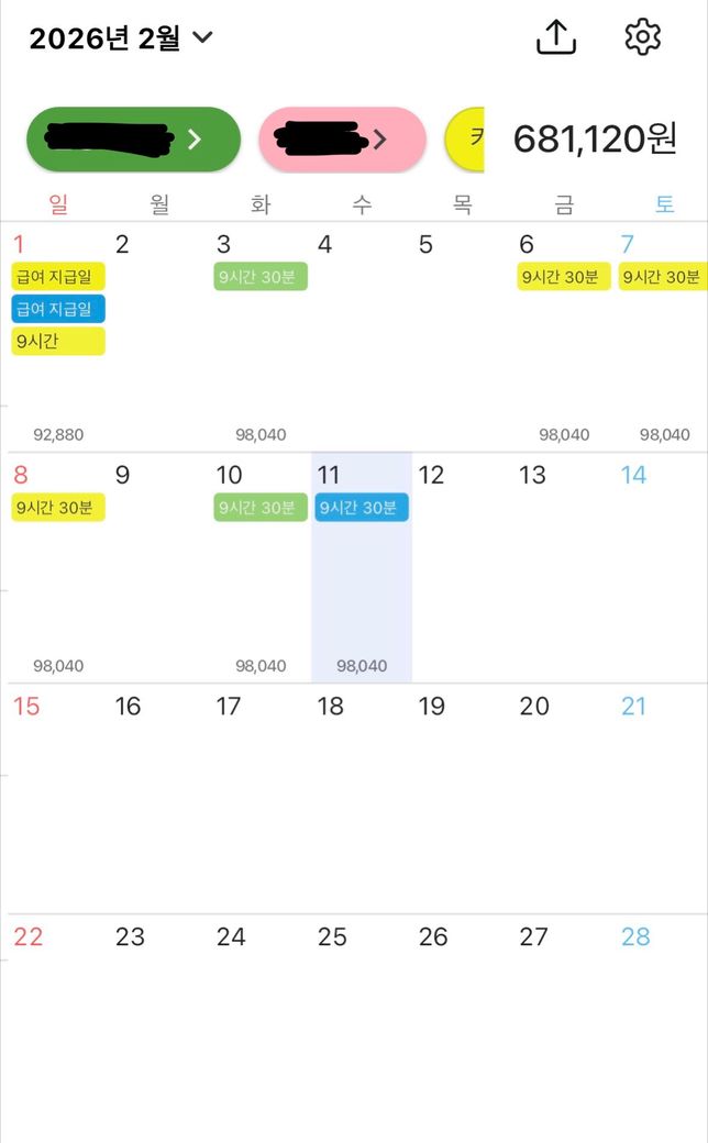 1.이렇게 근무하고 있는데 일급이 11만원입니다.