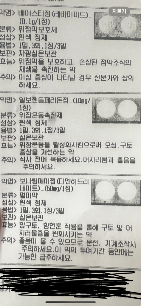 역류성식도염 약 및 저번주 병원에서 속이 안좋아서 처방받은약