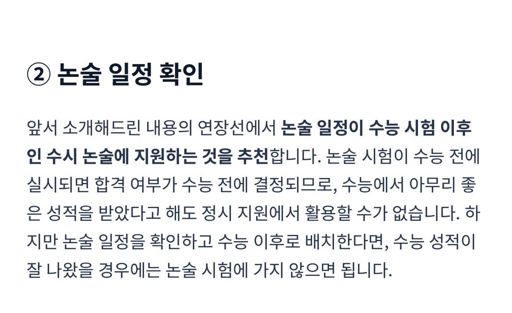 왜냐면 수능 전에 있는 논술전형은 수능 준비하다가 논술준비 때문에 시간 뺏기고