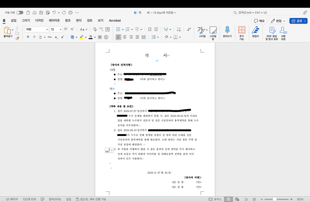 집주인 누수 보수 회피에 대한 법적 조치와 각서 관련 문의드려요