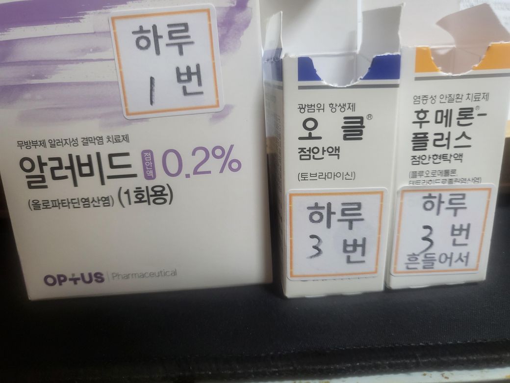 위 사진 속 안약과 처방 받은 약을 병용 해도 될까요? 추가로 편도염과 각막 상처가 동시에 발병한 상황입니다. 그래서 안약과 처방약을 병용해야하는 상황입니다. 또한 헥사메딘도 추가하여 병용 가능할까요?