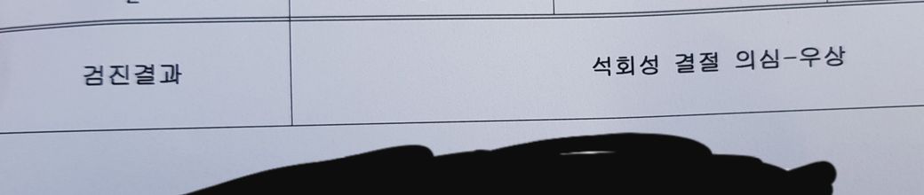 질문하신 내용에 대하여 아래와 같이 답변 드립니다.석회성 결절 의심이라고 되어 있는 부위도 나와있지 않기 때문에 바로 진단명을 추측할 수는 없습니다. 검사한 의료기관에 직접 문의해보시는 것이 가장 좋습니다. 얻을 수 있는 정보가 너무 제한적이네요