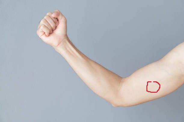 위 사진 처럼 팔이 지렇게 있다고 치면 빨간 동그마리 쳐진 위 사진처럼 팔 안 쪽에 압박감 같은게 느껴집니다.