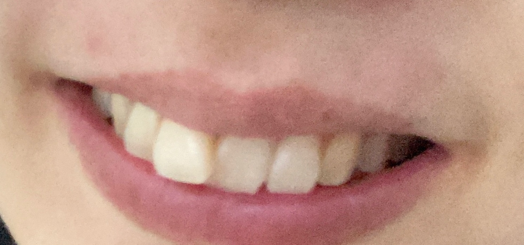 위 앞니 치아 하나의 치축만 살짝 바깥으로 기울어져 있는 것 같습니다. 부분교정을 해주면 될 것 같습니다.