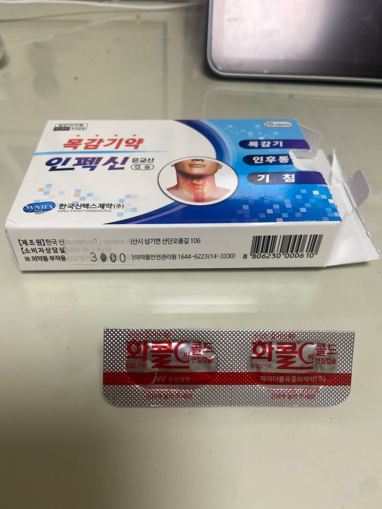 목감기 약 복용 (인펙신과 화콜)!!