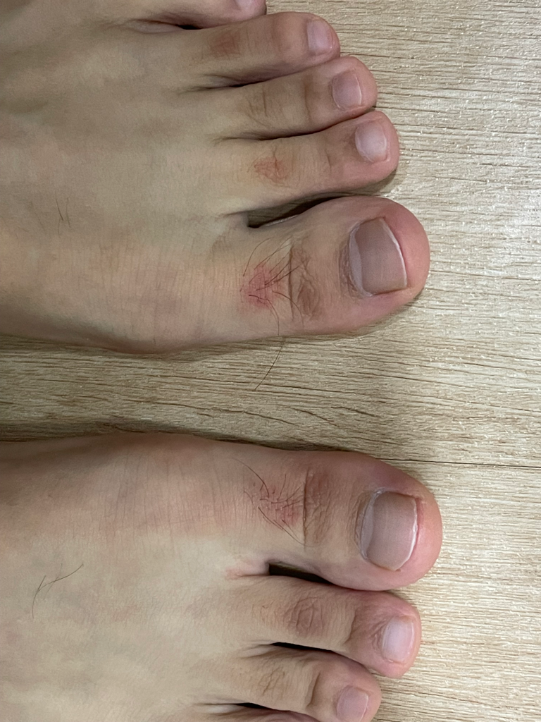 음 샤워하고 나오면 다른 곳은 금방 붉은끼가 빠지는데 유독 발가락 손가락 털나는 부위가 선명하게 붉고 좀 더 시간이 지나야 빠지더라구요 사진보다 육안으로 훨씬 붉게 보입니다또 손은 털구멍도 그렇고 이름은 모르겠는데 사진찍은 볼록 튀어나온 부위가 붉어집니다.